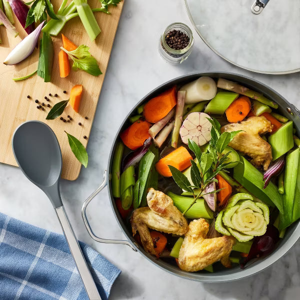 It's easy to prepare stocks, soups, pasta and more in this 8-Quart Nonstick Ceramic-Coated Aluminum Wide Stock Pot form Figmint™. This wide stock pot's aluminum construction promotes even heat distribution, and the smooth, nonstick surface is easy to clean and lets you cook with less oil (to protect the nonstick surface, use only with silicone, nylon or wood utensils). The pot is compatible with electric, gas and induction stoves and oven safe up to 450 degrees, and it's also dishwasher safe, although hand washing is recommended for longer product life.