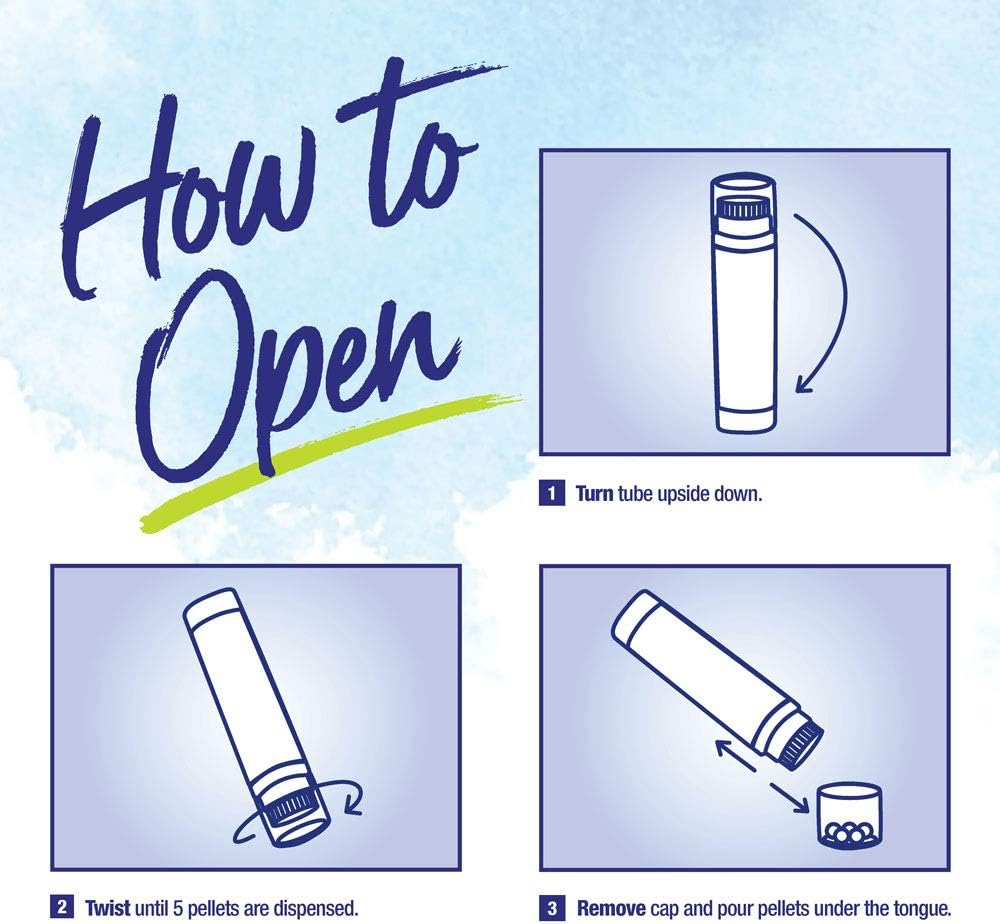 How to dispense pellets? 1. Turn tube upside down. 2. Twist until 5 pellets are dispensed into cap. 3. Carefully remove cap and use it to pour pellets under the tongue. Download our free Boiron Medicine Finder app for the fastest way to find the best homeopathic medicine to relieve your symptoms.
