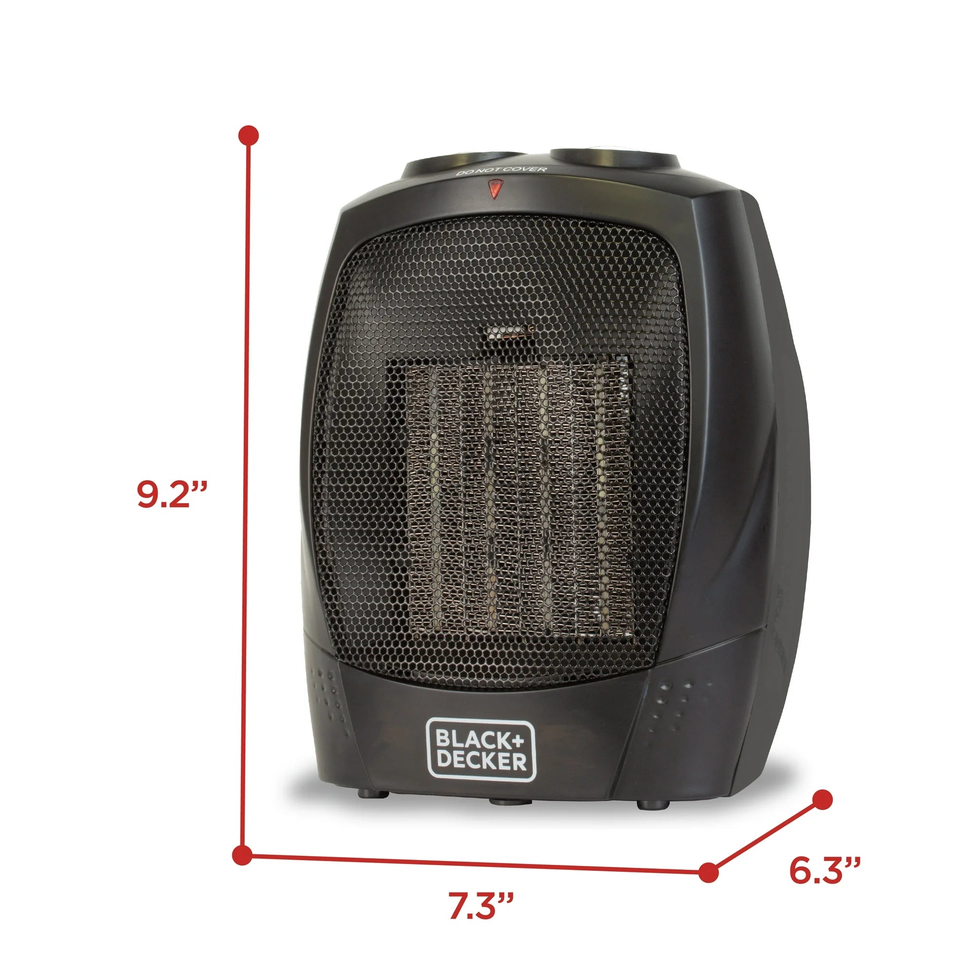 The Black+Decker Ceramic Heater is made for those chilly days in your house or at the office. Its smaller size provides effective, consistent warmth and won't get in the way. This Black+Decker electric heater has four settings and an adjustable thermostat you can set it to your comfort level. This home heater is also suitable for use in a garage, basement, cottage or cabin. It features a self-regulating ceramic element. This Black+Decker heater comes with Tip over switch and safety overheat protection for automatic shutoff prevents it from getting too hot. This heater offers a convenient carry handle that makes it easy to transport.