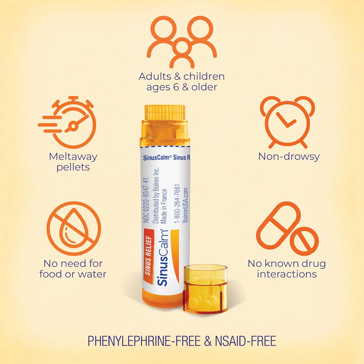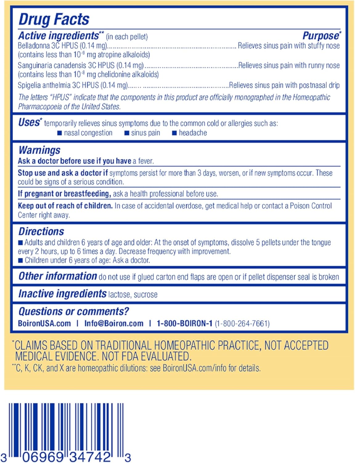 Boiron SinusCalm Pellets for Sinus Pain Relief, Runny Nose, Congestion, Sinus Pressure, Headache - 2 Count (160 Pellets)